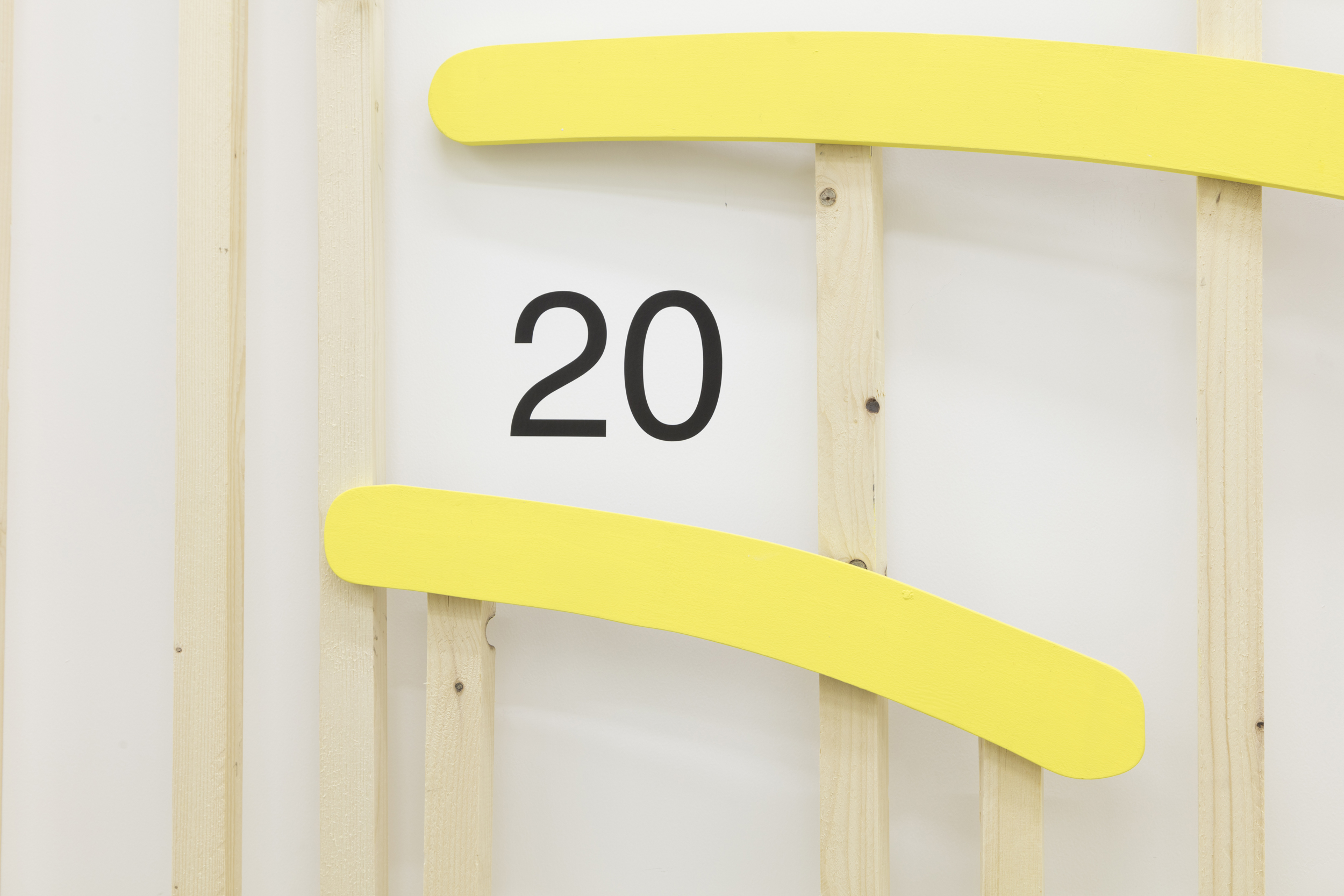 This exhibition strives to connect Quintanar’s previous colorful design work with his more recent stripped-down visuals. Earlier landscape drawings will be presented in their entirety outside of a book format and excerpts or documentation of book and installation works will further demonstrate the artist’s use of bare lines. The installation of “Dutch Landscape #11” sees Quintanar transfer his lines from two-dimensional drawing to three-dimensional wood segments, which were milled locally instead of shipped by the artist from the Netherlands. By having the piece crafted, arranged, and installed beyond his direct control, Quintanar adds another procedure to his work and resists a definitive presentation of his process. In the absence of lush pictures of nature, viewers will see an involved hand and a commitment to structured thinking.
